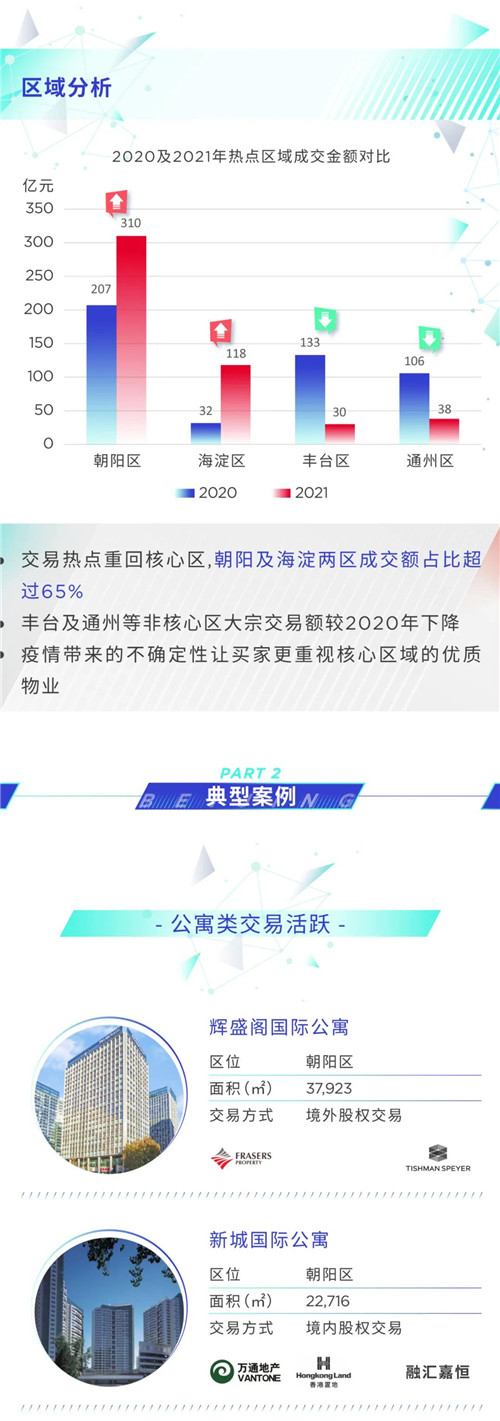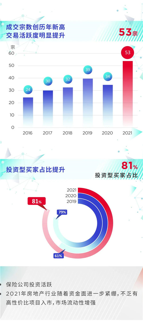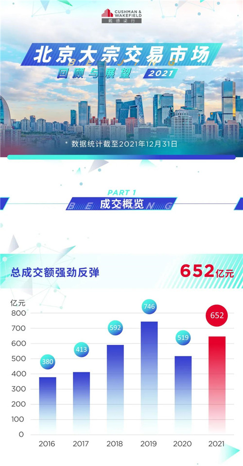 戴德梁行日前發(fā)布2021年北京大宗交易市場報告指出,2021北京大宗交易總成交額強勁反彈達652億元,為歷史次高水平;成交宗數(shù)創(chuàng)歷年新高,交易活躍度明顯提升。