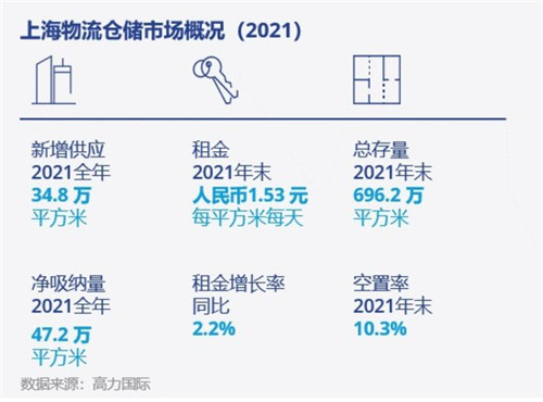 2021年上海全市高標(biāo)倉平均租金為人民幣1.53元/平方米/天,較2020年上漲了2.2%。