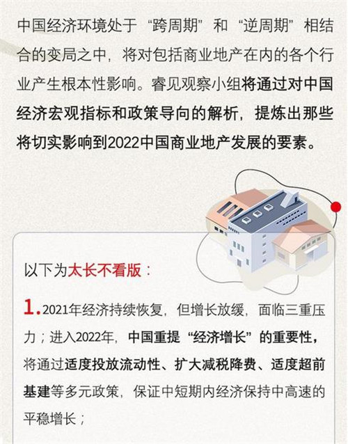 2022年,中國的宏觀經濟政策將適度趨于偏松調節(jié),在熨平經濟風險的同時重提經濟中高速平穩(wěn)增長的重要性,保證預期改善和經濟復蘇的穩(wěn)定性。對于房地產市場這意味著什么呢?