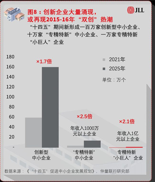 睿見觀察小組觀點:推動創(chuàng)新型大中小企業(yè)發(fā)展,即強健經濟毛細血管、暢通經濟循環(huán),新一輪“雙創(chuàng)”企業(yè)將在未來幾年不斷涌現;上市企業(yè)數量和融資規(guī)模的進一步擴張,將為市場主體帶來更為直接、完善的金融資本和資源支持,進而激發(fā)活躍的不動產需求。