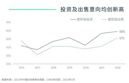 雖然新冠疫情在2021年仍有零星發(fā)生,但精準快速的防控措施極大地降低了疫情對市場的影響,中國內地大宗交易市場已恢復常態(tài)。CBRE世邦魏理仕近日發(fā)布《中國2022年投資者意向調查》顯示,投資者對中國內地商業(yè)地產的長期信心增強,59%的受訪者選擇在2022年“更積極投資”,再創(chuàng)2016年首次投資者意向調查以來的新高。
