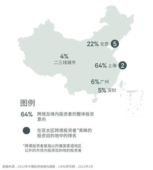 調查發(fā)現(xiàn),64%受訪者將上海作為首選投資目的地,使上海蟬聯(lián)境內外買家在中國內地最青睞的投資市場,并且在亞太地區(qū)跨境投資目標城市中躍居次席。2021年上海創(chuàng)新高的寫字樓需求和租金走勢的企穩(wěn)進一步提振了投資者的信心。并且,在主流物業(yè)類型之外,生命科學地產、長租公寓等新投資熱點的快速涌現(xiàn)也讓上海呈現(xiàn)出更加多元化的投資機會。位列第二的北京在亞太區(qū)跨境投資目標城市中居于第五位,較上年提升一個座次。北京對商辦和物流地產在供應端的限制,以及不可動搖的領先科技和金融中心地位使其得到投資者的重點關注。此外,大灣區(qū)作為中國經濟的另一引擎,其倉儲物流設施、面向創(chuàng)新產業(yè)和先進制造業(yè)的商務園區(qū),以及兼具高品質辦公性能和產業(yè)用地內核的新型產業(yè)寫字樓項目(M0)也值得關注。
