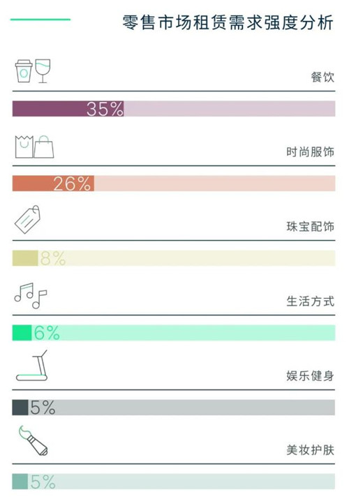 餐飲依舊是主要驅(qū)動(dòng)力,需求占比35%,其中以傳統(tǒng)中餐和咖啡茶飲品類需求最為亮眼。包括陶陶居、添好運(yùn)以及江邊城外在內(nèi)的中式餐飲需求較為活躍。在咖啡茶飲品類中,資本持續(xù)推動(dòng)線下連鎖咖啡品牌擴(kuò)張,其中M Stand、Manner Coffee以及Lavazza擴(kuò)張積極。此外,新式茶飲賽道關(guān)注升級(jí),顧客體驗(yàn)與運(yùn)營(yíng)效率兼顧。時(shí)尚品類占比26%,女裝、運(yùn)動(dòng)及設(shè)計(jì)師品牌表現(xiàn)亮眼。本土運(yùn)動(dòng)品牌借勢(shì)冬奧會(huì),擴(kuò)張?zhí)崴,?guó)潮運(yùn)動(dòng)品牌中國(guó)李寧和回力擴(kuò)張積極,此外,安踏集團(tuán)通過(guò)多品牌策略持續(xù)擴(kuò)大其市場(chǎng)份額,包括DESCENTE、FILA以及FILA FUSION等旗下品牌線下需求活躍。服務(wù)業(yè)態(tài)占比13%,以?shī)蕵方∩砗蛡(gè)人護(hù)理品類需求為主。超級(jí)猩猩引領(lǐng)健身新模式,布點(diǎn)積極;而密室逃脫和劇本殺等娛樂項(xiàng)目則以其高度社交性以及沉浸式的場(chǎng)景,滿足了新一代消費(fèi)群體對(duì)于線下娛樂的多元需求,擴(kuò)張?zhí)崴。年末全市空置率同比下?.6個(gè)百分點(diǎn)至6.7%。