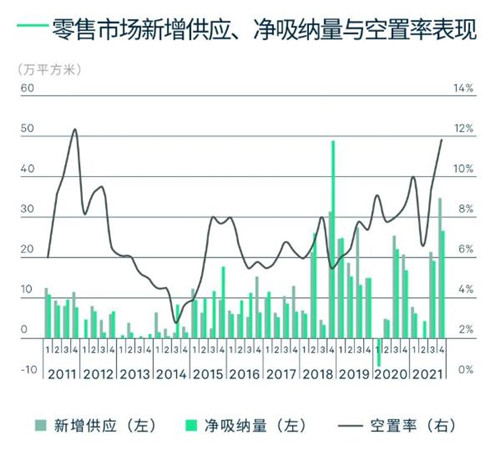 受“7·20特大自然災(zāi)害”及“新冠疫情”的影響,2021年鄭州零售物業(yè)市場(chǎng)起伏較大,空置率方面推升至11.8%,為近年來最高。供應(yīng)端主要集中在第四季度,全年市場(chǎng)共錄得11個(gè)購(gòu)物中心入市,以城市更新存量改造為主。其中,位于二七商圈的CITY大融城通過多維度整體改造,以引進(jìn)多個(gè)城市首進(jìn)品牌為核心,不僅成為了近年來具有代表性的城市更新存量改造項(xiàng)目,也為二七商圈注入了新活力,助推片區(qū)商業(yè)氛圍提升。此外,位于城市近郊的杉杉奧特萊斯購(gòu)物廣場(chǎng)2期、新城吾悅廣場(chǎng)·滎陽店歷經(jīng)籌備實(shí)現(xiàn)了滿鋪開業(yè),也體現(xiàn)出由專業(yè)成熟的開發(fā)運(yùn)營(yíng)商操盤下,對(duì)市場(chǎng)形成的優(yōu)質(zhì)供應(yīng)和區(qū)域消費(fèi)提檔升級(jí)。