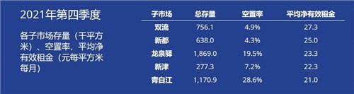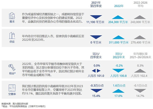 由于年內(nèi)部分待交付項目推遲至明年入市,供應小高峰將延后至2022年至2023年期間,高力預計2022年全市或?qū)⒂瓉砉灿嫾s31.1萬平方米的新增供應,范圍覆蓋大源、天府廣場、東大街等大多數(shù)子市場。