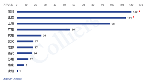 需求量:深圳市場(chǎng)的需求量領(lǐng)跑全國(guó),達(dá)到創(chuàng)歷史記錄的近120萬平米的水平,北京緊隨其后也達(dá)到了創(chuàng)記錄的114萬平方米,上海也創(chuàng)造了近百萬平米的新增需求,光這三個(gè)一線市場(chǎng)就占到了全部需求量的7成。