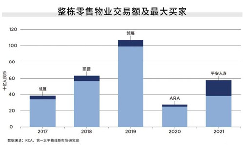 在開發(fā)市場,未來供應(yīng)極大概率將由優(yōu)質(zhì)開發(fā)商主導(dǎo)。在投資市場,險資、核心基金也正成為主力買家。中國內(nèi)地零售物業(yè)投資市場總額較2020年顯著復(fù)蘇,達人民幣578億元,同比上升107%。其中前三大買家收購金額占比則創(chuàng)下近年新高,達到60%。