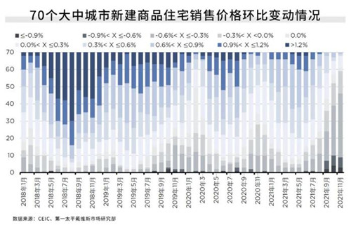 至2021年末,住宅市場調(diào)控政策底逐漸顯現(xiàn),2021年前十一個月的商品住宅成交面積達到14億平方米,與2020年的低點相近。政策正迎來調(diào)整緩和預(yù)期,但傳導(dǎo)落地仍需時日。