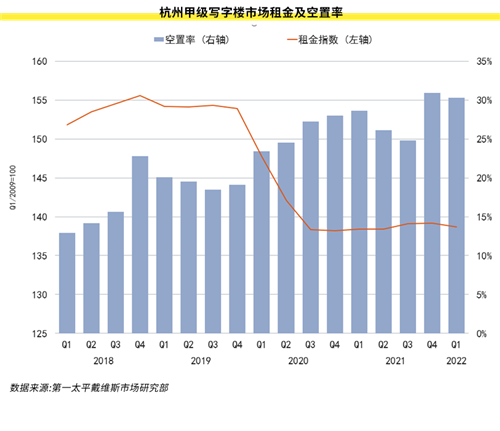 第一太平戴維斯近日發(fā)布報告指出,受疫情影響,2022年第一季度杭州無甲級寫字樓項目入市,全市甲級寫字樓存量維持在226萬平方米。