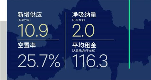 2022年第一季度,南京寫字樓市場錄得一個新項目入市,南京中海廣場,體量逾10.9萬平方米,推升全市總存量至326.4萬平方米。季內(nèi)搬遷置換主導租賃需求,凈吸納量約2萬平方米,而較大體量供應推升空置率水平高位運行,環(huán)比上調(diào)1.9個百分點至25.7%。