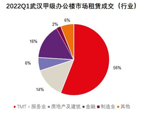 TMT行業(yè)持續(xù)領(lǐng)跑需求,服務(wù)及金融行業(yè)表現(xiàn)穩(wěn)定。一季度受疫情及季節(jié)性因素的影響,市場(chǎng)需求相較于上季度,活躍度有所下降。得益于政府招商引資和業(yè)主自用的穩(wěn)定需求,新入市項(xiàng)目整體空置率較低,全市辦公樓凈吸納量達(dá)到19.6萬平方米,基本與上季度持平,其中甲級(jí)辦公樓凈吸納量為2.1萬平方米,乙級(jí)市場(chǎng)的凈吸納量約為17.5萬平方米。