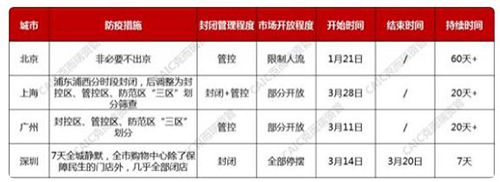 表:一線城市防疫政策