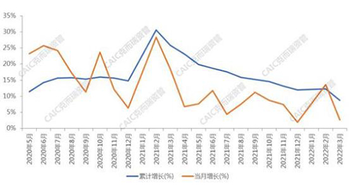 多地疫情并發(fā)在一定程度上導(dǎo)致了物流不暢,使線上消費(fèi)受到較大壓制,社零總額中實(shí)物商品網(wǎng)上零售 3 月同比僅微增 2.67%,增速下降明顯。