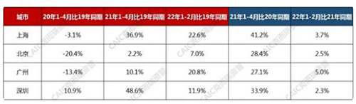 表:2019-2022 年 1-2 月北上廣深社零同比增速(%)