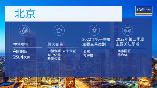 一季度北京共錄得4筆交易,總成交額為29.4億元,總成交面積約15萬方。