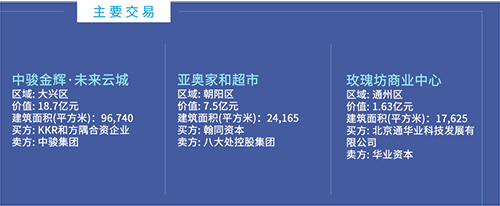 翰同資本以7.5億元購得亞奧家和超市的整棟零售資產(chǎn),欲將該資產(chǎn)改造成辦公空間。一季度完成的其他交易包括海淀區(qū)和通州區(qū)的兩個不良資產(chǎn)。