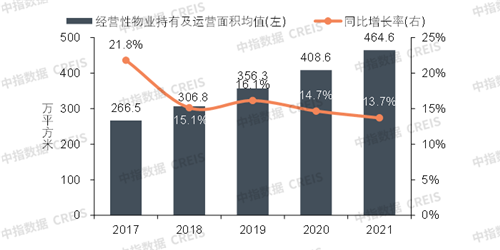 ·經(jīng)營(yíng)性物業(yè)持有及運(yùn)營(yíng)規(guī)模同比保持增長(zhǎng) 但增速回落1.0個(gè)百分點(diǎn)至13.7%
