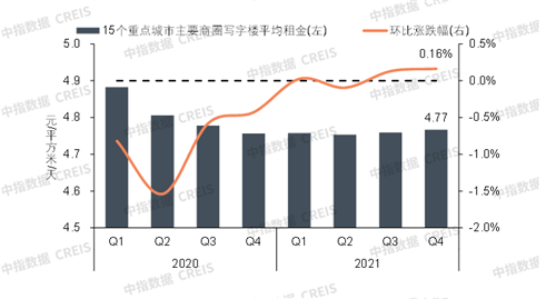 2020-2021年全國(guó)重點(diǎn)城市主要商圈寫(xiě)字樓平均租金及環(huán)比變化圖片