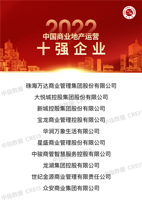2022年是黨的二十大召開(kāi)之年,盡管疫情影響仍在持續(xù),但我國(guó)經(jīng)濟(jì)長(zhǎng)期向好的基本面沒(méi)有改變,消費(fèi)升級(jí)趨勢(shì)沒(méi)有改變。在外部環(huán)境復(fù)雜多變與行業(yè)轉(zhuǎn)型的關(guān)鍵之年,商業(yè)地產(chǎn)百?gòu)?qiáng)企業(yè)應(yīng)積極把握行業(yè)變化、強(qiáng)化運(yùn)營(yíng)能力,挖掘新增長(zhǎng)點(diǎn),保障自身穩(wěn)健經(jīng)營(yíng)的同時(shí)引領(lǐng)商業(yè)地產(chǎn)行業(yè)平穩(wěn)健康發(fā)展。