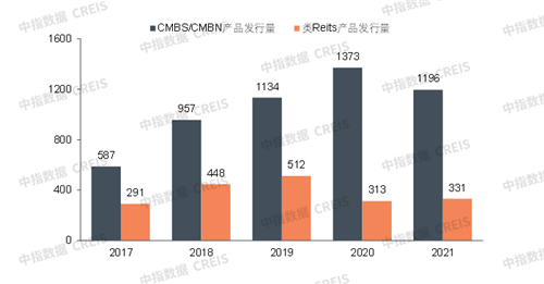 2017-2021年類(lèi)REITs和CMBS/CMBN產(chǎn)品發(fā)行量圖片