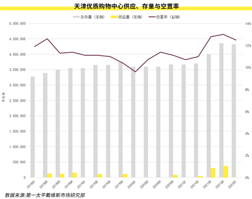 一季度,天津零售市場無新項(xiàng)目入市。受疫情反復(fù)影響,實(shí)體零售消費(fèi)出現(xiàn)一定的下滑,但經(jīng)歷過至暗時刻的實(shí)體商業(yè)已經(jīng)具備完善的防疫流程,零售購物的服務(wù)與體驗(yàn)流程得以充分保障。各大購物中心品牌調(diào)整步伐并未停擺,其中新能源汽車、甜品、特色餐飲品牌拓展較為活躍。全市平均空置率環(huán)比微降0.5個百分點(diǎn)、同比上升1.8個百分點(diǎn)至12.5%。全市范圍內(nèi)平均租金調(diào)整為每平方米每月325.1元,租金指數(shù)環(huán)比、同比分別下降1%及1.2%。