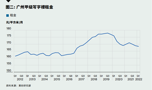 本季度,全市甲級(jí)寫字樓平均租金延續(xù)下行趨勢(shì),環(huán)比下降0.3%至每月每平方米人民幣168.4元。