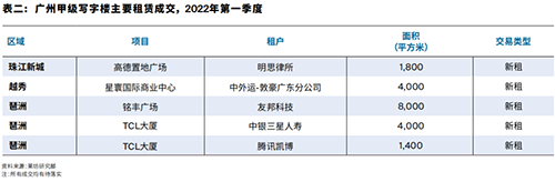 萊坊廣州分公司總經(jīng)理黃一勻表示,從租賃成交來看,科技,金融仍是本季度成交主力,值得關(guān)注的是,隨著2022年廣州政府工作報(bào)告強(qiáng)調(diào)把發(fā)展經(jīng)濟(jì)的著力點(diǎn)放在實(shí)體經(jīng)濟(jì),以及堅(jiān)持“制造業(yè)立市”不動(dòng)搖的政策指導(dǎo)下,制造業(yè)特別是高端制造業(yè)的租賃需求迎來明顯提升。