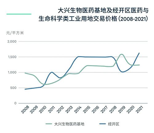 注:經(jīng)開(kāi)區(qū)自2019年開(kāi)始,大興生物醫(yī)藥基地自2020年開(kāi)始,所有交易土地均為20年產(chǎn)權(quán),此前均為50年產(chǎn)權(quán),20年產(chǎn)權(quán)地價(jià)已調(diào)整為50年產(chǎn)權(quán)可比價(jià)格