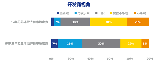 整體來看,受訪者對于未來三年中國的總體經濟和市場走勢更為樂觀,71%的受訪者對宏觀市場的信心并沒有受到負面影響,超過30%的開發(fā)商和投資方都繼續(xù)看好未來三年走勢?梢钥闯龃舜我咔閷κ茉L者市場信心的影響僅為短期和階段性的。