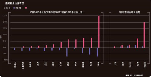 以邁阿密為例,宜人氣候、低稅率和高質(zhì)量的生活推動(dòng)了市場(chǎng)內(nèi)豪宅資本價(jià)值和租金在2021年上漲20%,預(yù)計(jì)該城市2022年增長(zhǎng)仍在10%以上。具體城市積極展望各有不同,但第一太平戴維斯預(yù)計(jì)2022年豪宅平均價(jià)格增長(zhǎng)將達(dá)到4.3%。