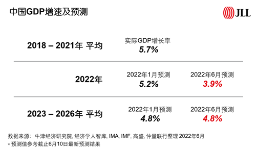 今年上半年,全國多地疫情出現(xiàn)反復(fù),供應(yīng)鏈?zhǔn)艿經(jīng)_擊,消費和生產(chǎn)活動受到不同程度的影響。同時,外部地緣政治的不確定性以及全球滯漲風(fēng)險等因素加大了經(jīng)濟下行壓力。對比疫情前的預(yù)測,多家經(jīng)濟研究機構(gòu)于近期紛紛下調(diào)對于今年中國GDP增速的預(yù)測:從今年一月平均5.2%的全年預(yù)測下調(diào)至平均3.9%。