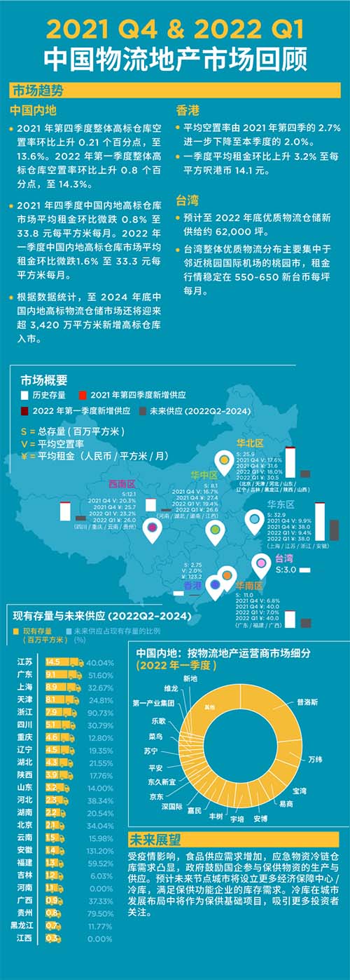 戴德梁行研究部與產(chǎn)業(yè)地產(chǎn)部聯(lián)合發(fā)布了2021年第四季度及2022年第一季度《大中華區(qū)物流地產(chǎn)市場快報》,就這兩季度內(nèi)大中華區(qū)物流地產(chǎn)的市場趨勢及未來發(fā)展進行了解讀。