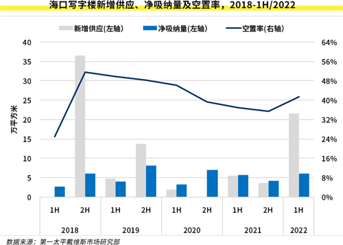 2022年上半年,盡管部分新項目錄數(shù)宗矚目租賃成交,并推動?趯懽謽鞘袌鰞粑{量環(huán)比上升43.9%,但鑒于期內(nèi)新增供應(yīng)為近三年半最高,達21.5萬平方米,全市空置率因此結(jié)構(gòu)性環(huán)比上升6.0個百分點。