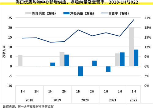 2022年上半年,疫情復發(fā)令?谙M市場承壓。受此影響,大部分既有項目均存在租戶退租現(xiàn)象,進而導致全市平均空置率環(huán)比上升5.1個百分點。盡管如此,核心區(qū)域標桿項目仍受青睞,相當數(shù)量的餐飲、時尚及休閑與娛樂相關(guān)品牌于期內(nèi)入駐,其中不乏海南首店及?谑椎辍