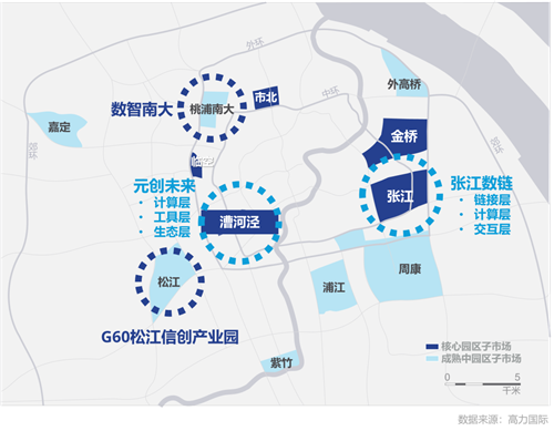 漕河涇元?jiǎng)?chuàng)、張江數(shù)鏈?zhǔn)巧虾HΥ蛟斓膬蓚(gè)元宇宙特色園區(qū);數(shù)智南大、G60松江信創(chuàng)產(chǎn)業(yè)園定位數(shù)字經(jīng)濟(jì)特色園區(qū)。
