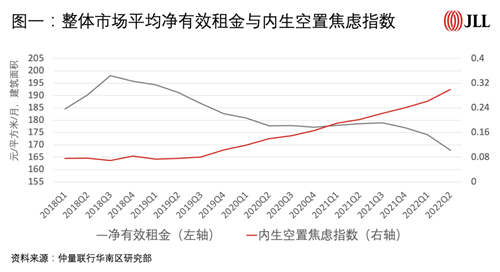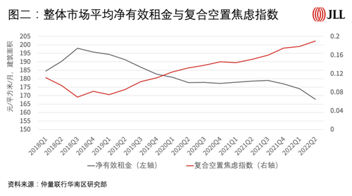 仲量聯(lián)行研究部創(chuàng)見性地在業(yè)內(nèi)發(fā)布辦公樓空置焦慮指數(shù)(anxiety index)——綜合“內(nèi)生”(動(dòng)態(tài)空置變化)以及“外生”(市場供應(yīng)變化)兩大因素,量化分析業(yè)主實(shí)時(shí)對(duì)外招租心態(tài),從而形成一套量化工具為辦公樓宇租金定價(jià)策略提供更多維度參考。