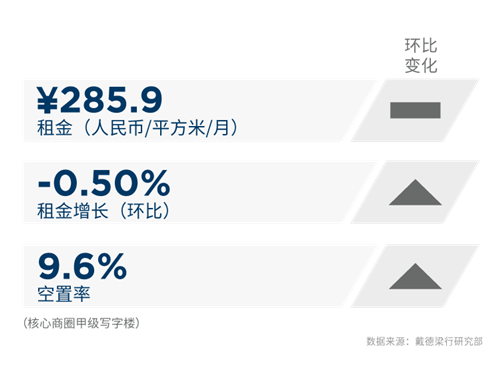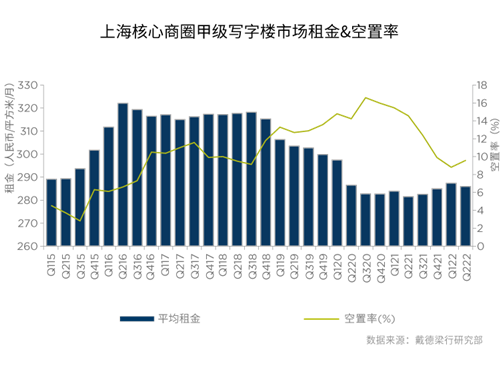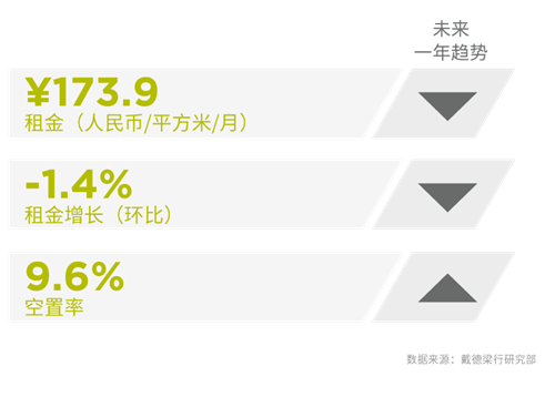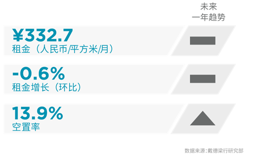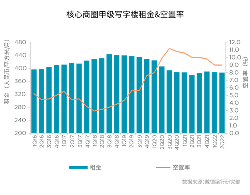 季度甲級(jí)寫(xiě)字樓租金和空置率走勢(shì)