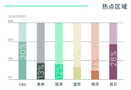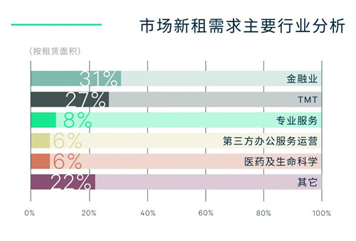 金融和TMT合占新租交易總量的58%,分居前兩大行業(yè),主要集中在軟件開發(fā)、人工智能、產(chǎn)業(yè)數(shù)字化、證券、保險以及資產(chǎn)管理等細分領域,其中金融的擴租需求突出。本季度醫(yī)藥及生命科學行業(yè)新租需求放量明顯,占比進一步攀升。分區(qū)域,CBD和麗澤為新租需求主力釋放區(qū),CBD行業(yè)結(jié)構(gòu)最均衡,麗澤租戶行業(yè)也日漸多元。此外,麗澤、通州和石景山等新興區(qū)域逐步承接更多的跨區(qū)、升級搬遷需求。