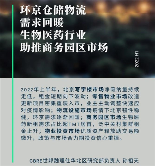 CBRE華北區(qū)董事總經(jīng)理劉煥麗表示,2022年下半年北京商務園區(qū)市場預計還將迎來87.3萬平方米的新增供應。近期政府發(fā)布《北京市關(guān)于實施‘三大工程’進一步支持和服務高新技術(shù)企業(yè)發(fā)展的若干措施》,釋放加大對高新技術(shù)企業(yè)技術(shù)創(chuàng)新的支持力度,強化融資、人才服務保障,支持拓展產(chǎn)品市場渠道,完善空間和用地供給,優(yōu)化創(chuàng)新要素配置等利好,將進一步促進北京國際科技創(chuàng)新中心和中關(guān)村世界領先科技園區(qū)建設,帶動商務園區(qū)的區(qū)域環(huán)境完善和產(chǎn)業(yè)需求導入。