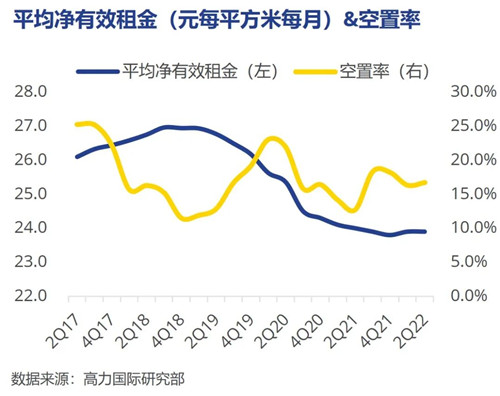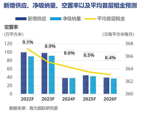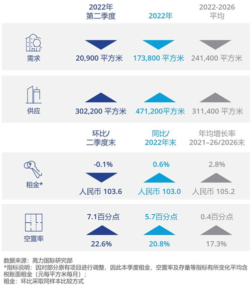 空置率及租金方面,受益于趨緩的市場(chǎng)供應(yīng),全市空置率半年環(huán)比下降1.5個(gè)百分點(diǎn)至16.7%。全市平均凈有效租金半年環(huán)比上升0.3%至23.9元每平方米每月。