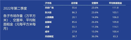 供應(yīng)方面,本季度共計(jì)三個(gè)新項(xiàng)目入市,合計(jì)新增供應(yīng)面積19.7萬平方米,分別為位于城東的環(huán)貿(mào)ICD,以及天府新區(qū)的天投方圓薈與天府保稅商業(yè)中心。截至第二季度末,全市優(yōu)質(zhì)零售商業(yè)市場(chǎng)總存量突破900萬平方米。