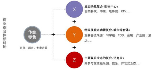 傳統(tǒng)零售+Z模式:以休閑娛樂為核心驅(qū)動力,以娛樂產(chǎn)業(yè)引領(lǐng),擁有獨立稀缺品牌IP屬性的多元業(yè)態(tài)體驗式商業(yè)集群,Z模式是休閑體驗活動為主、以交通為核的商業(yè)項目,可獨立于X、Y模式以外個性發(fā)展,可驅(qū)動大規(guī)模的目的性體驗消費客流,其呈現(xiàn)載體如體驗型購物中心、影視主題樂園、運動冒險樂園、海洋主題公園等。