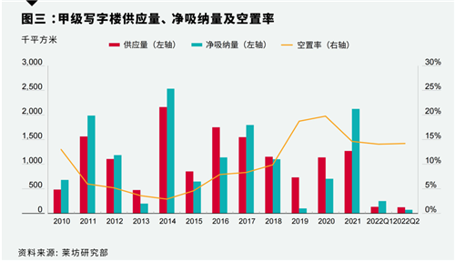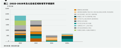 第二季度上海甲級寫字樓市場共有兩個新項目竣工交付,為市場總計帶來123,682平方米的寫字樓面積。6月,位于徐匯濱江的星瀚廣場竣工交付,作為星揚(yáng)西岸中心的二期項目,寫字樓建筑面積約為80,612平方米。5月,位于新靜安蘇河灣區(qū)域的龍盛福新匯竣工交付,寫字樓建面約為43,070平方米。由于受到疫情的影響,不少計劃入市的項目均延期至下半年或者明年交付。預(yù)計未來兩年,每年都將會有超過150萬平方米的辦公項目交付,對于樓宇業(yè)主以及寫字樓市場都會存在去化壓力。