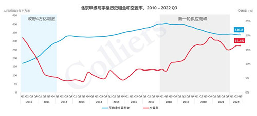 高力國際華北區(qū)董事總經(jīng)理嚴區(qū)海表示,2022年第三季度,北京甲級寫字樓市場凈吸納量恢復至-6,400平方米,需求強度相較二季度出現(xiàn)了明顯改善。本季度市場無新增入市的甲級項目,因此部分子市場的空置率上升主要是由于市場存量項目釋放出更多空置面積所致。全市場空置率維持在16.4%的水平,凈有效租金穩(wěn)定在336.8元每月每平米。在核心子市場方面,除了受益于大宗租賃成交的東城商務區(qū)和高性價比的麗澤商務區(qū)出現(xiàn)比較積極的去化,其他子市場空置率均呈現(xiàn)不同程度的上升。