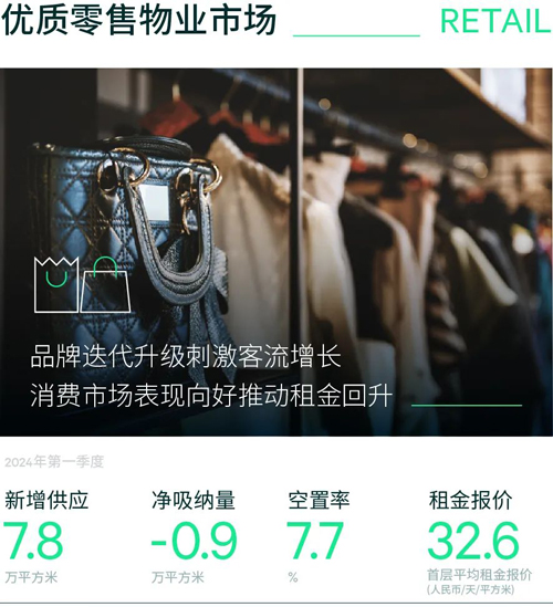 2024年第一季度,北京零售物業(yè)市場(chǎng)改造更新項(xiàng)目王府井喜悅重裝開(kāi)業(yè),同期次級(jí)商圈一座購(gòu)物中心和一座百貨停業(yè),項(xiàng)目?jī)?nèi)品牌同時(shí)撤出導(dǎo)致凈吸納量為負(fù)。受益于部分前期高空置項(xiàng)目完成品牌調(diào)改,全市空置率環(huán)比小幅回落0.3個(gè)百分點(diǎn)至7.7%。
