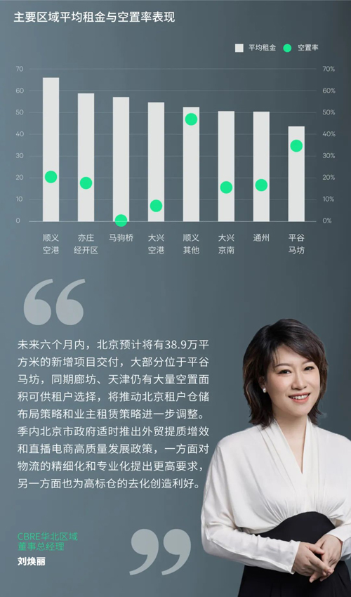北京長(zhǎng)期處于高位的租金水平自2010年以來(lái)首次走低,平均租金同樣本比環(huán)比下降1.4%至每月每平方米56.5元,其中平谷大幅調(diào)整,可租賃空間較充裕的順義其他、通州、大興京南等子市場(chǎng)亦有小幅下滑,而順義空港、馬駒橋等剛需型核心市場(chǎng)則相對(duì)穩(wěn)定。