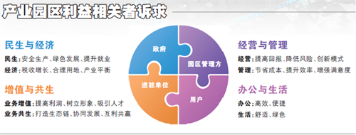 產(chǎn)業(yè)地產(chǎn)和園區(qū)已經(jīng)成為人口和生產(chǎn)的聚集地。高新技術的加持,使園區(qū)從基于“單點作業(yè)、生產(chǎn)優(yōu)先”的被動服務方式,向“多點聯(lián)合、以人為本”的主動服務方式轉(zhuǎn)變。園區(qū)將提升利益相關者的體驗感和滿意度,視為園區(qū)智慧化發(fā)展的核心,但是不同的利益相關者有不同的訴求。