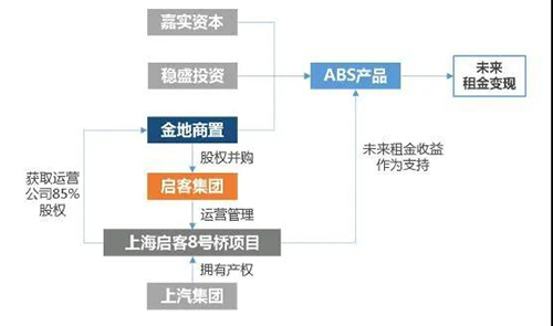 上海8號橋項目由啟客運(yùn)營十余年,商區(qū)成熟且租金來源穩(wěn)定,租金年均增長超過7%,在2016年10月被金地商置收購。金地商置運(yùn)營一年多的時間后,聯(lián)合嘉實資本和穩(wěn)盛投資,以8號橋項目未來租金收入作為支持,于2017年11月在金融市場發(fā)行了ABS產(chǎn)品,發(fā)行量為4.2億元,提前變現(xiàn)了未來3.5年的租金收入,成功通過金融手段等一系列操作實現(xiàn)資金的快速回籠。