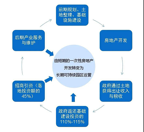 主要盈利模式: 一是通過墊付園區(qū)前期開發(fā)、基礎(chǔ)設(shè)施建設(shè)費(fèi),獲得政府10%~15%的利息收入;二是園區(qū)招商引資返還收入,即園區(qū)新增固定資產(chǎn)投資額或新增財政收入的45%;三是園區(qū)配套地產(chǎn)開發(fā)收入;四是園區(qū)土地升值收益。