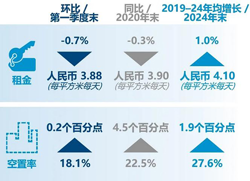 第一季度出現(xiàn)負吸納量,租金小幅下調